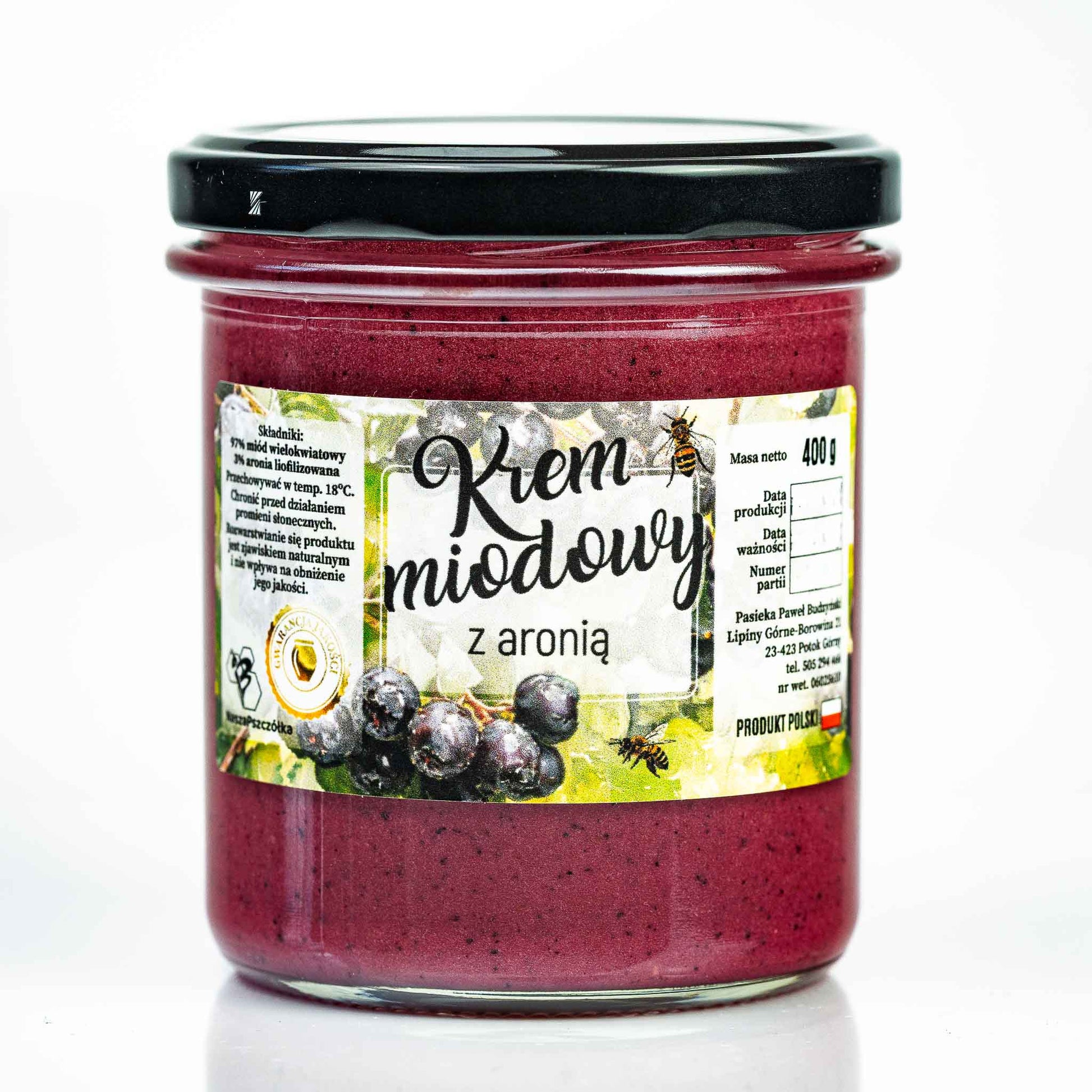- Skład: miód wielokwiatowy 97%, aronia 3%