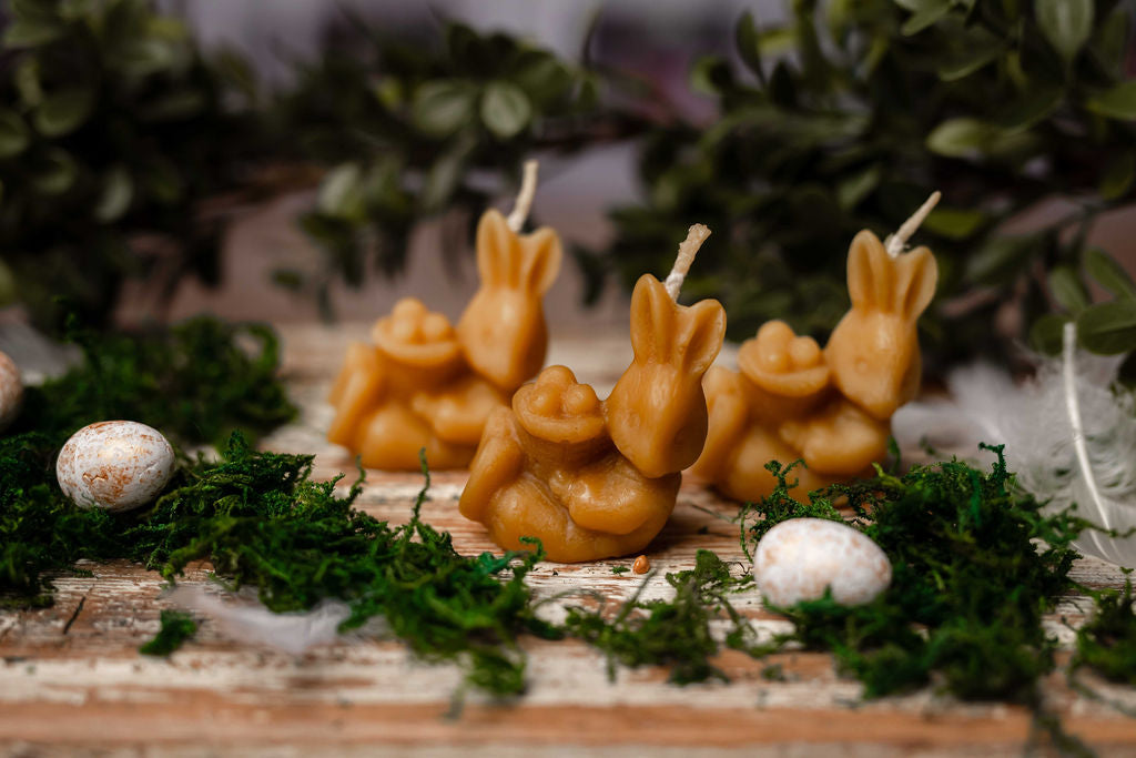Posiadamy świece wielkanocne w różnych kształtach i rozmiarach, w tym tradycyjne motywy nawiązujące do Wielkanocy, takie jak jajka pisanki, kurki, zajączki, baranki. Te naturalne świece podczas spalania posiadają właściwości, które pozytywnie wpływają na otoczenie, zapewniają ciepłe światło i emanują niezwykłym aromatem miodu i propolisu, wnosząc do domowego zacisza zapach i powiew wiosny. Wielkanocne świeczki doskonale sprawdzą się jako samodzielna dekoracja lub też część większej kompozycji. Będą idealnym dodatkiem do stroika na świąteczny stół, stanowiąc piękną ozdobę i nadając wyjątkowego charakteru wielkanocnemu śniadaniu. Można wykorzystać je także do wypełnienia wielkanocnego koszyczka lub jako drobny upominek dla najbliższych, co spodoba się zwłaszcza dzieciom.